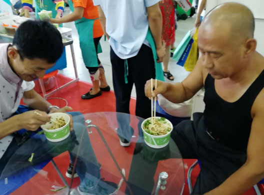 在現場,智能鮮面機“現吃現做,8秒出面”,吸引了眾多市民駐足品嘗。親眼觀看面條制作過程,親口品嘗現制鮮面條,成為了每個參觀者光臨萬杰智能展位的“標配”。有面味,筋道,好吃,麥香,安全,放心……,大家對萬杰智能的現制鮮面條贊不絕口。