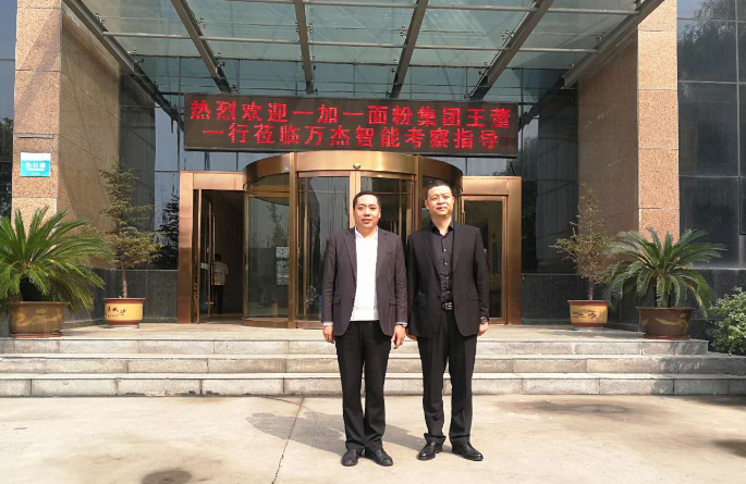 2017年10月19日,“一加一”天然面粉有限公司王董一行蒞臨萬杰智能參觀考察,經過深入溝通交流,雙方正式達成戰略合作。萬杰智能是鮮面機的發明者、開創者,一加一是天然面粉的倡導者,今后,雙方將強強聯合,優勢互補,立足智能鮮面機項目,力爭讓更多地區的百姓早日吃到0添加的現制鮮面條。