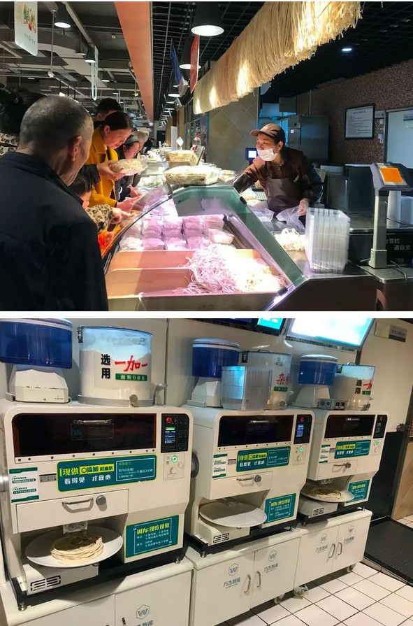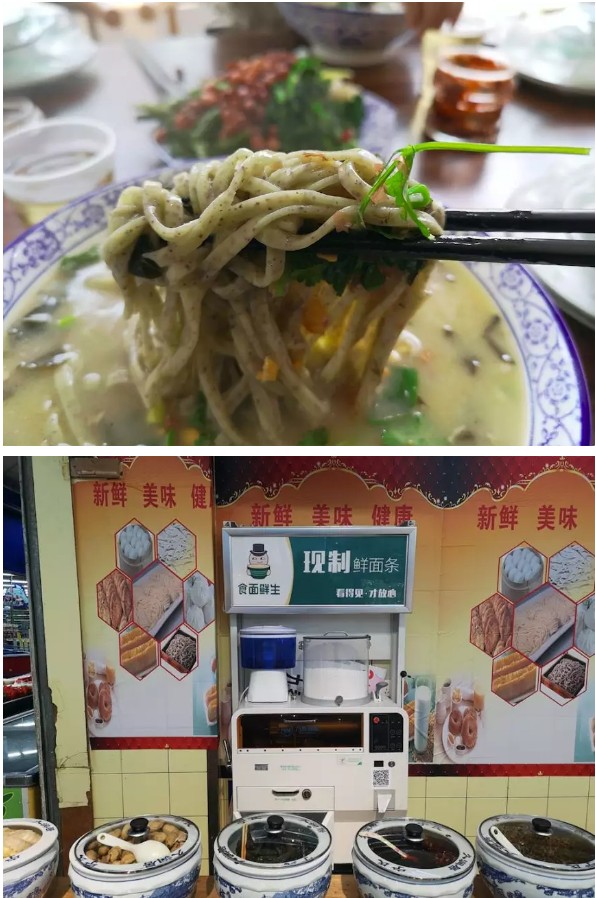 2016年下半年,許昌市作為樣板市場,正式開始鋪設鮮面機,不知不覺,已快3年,目前許昌市大范圍鋪設鮮面機,樣板市場從創(chuàng)立到發(fā)展至今逐漸成熟,經(jīng)過了一段創(chuàng)新實踐的探索之路。 從進駐雜面館到制作出的雜面條成為餐桌上的美味,從入駐胖東來等知名商超到被眾多老百姓熟知并認可,從傳統(tǒng)渠道的深耕再到打破常規(guī),入駐中原銀行,為全國的客戶與合作伙伴提供更多可借鑒的發(fā)展新思路。許昌市越來越多的老百姓,已經(jīng)習慣了鮮面機的陪伴,甚至,有些依賴。 這期間,有思考也有收獲。現(xiàn)如今,就智能鮮面機許昌市場的發(fā)展最新進展總結(jié)如下,希望與朋友們分享、共勉,能為朋友們帶來更多的借鑒。 一、 面館寵兒,省人工,配比好掌控。 在許昌有很多只賣雜面條的餐館,店里以主打雜面條為主,這類餐館就因為賣這種雜面條備受歡迎。而且,雜面條既美味又營養(yǎng),逐漸被越來越多的消費者認可。其中,許昌的野菜黑豆面和琛晟客來香雜面館是兩個新開業(yè)不久的雜面館。店老板表示,之所以選用智能鮮面機,一方面,可以有效的節(jié)省人工,降低成本;另一方面,雜面條的配比很重要,智能鮮面機現(xiàn)吃現(xiàn)做,可以輕松的調(diào)制面條和雜糧的比例,有效的保障面條的口感。此外,面條吃多少做多少,沒有浪費,為他們解決了做面的大難題。 值得一提的是,在琛晟客來香雜面館擺放了兩臺智能鮮面機設備。一臺擺放在一樓的進門處,可以與消費者面對面實現(xiàn)互動溝通,有效的聚集了人氣。另一臺則擺在后廚擔當起重任。兩臺智能鮮面機設備同時工作,成為店中不可或缺的“關鍵人物”。 二、 現(xiàn)制面條逐漸在商超店中成為流行。