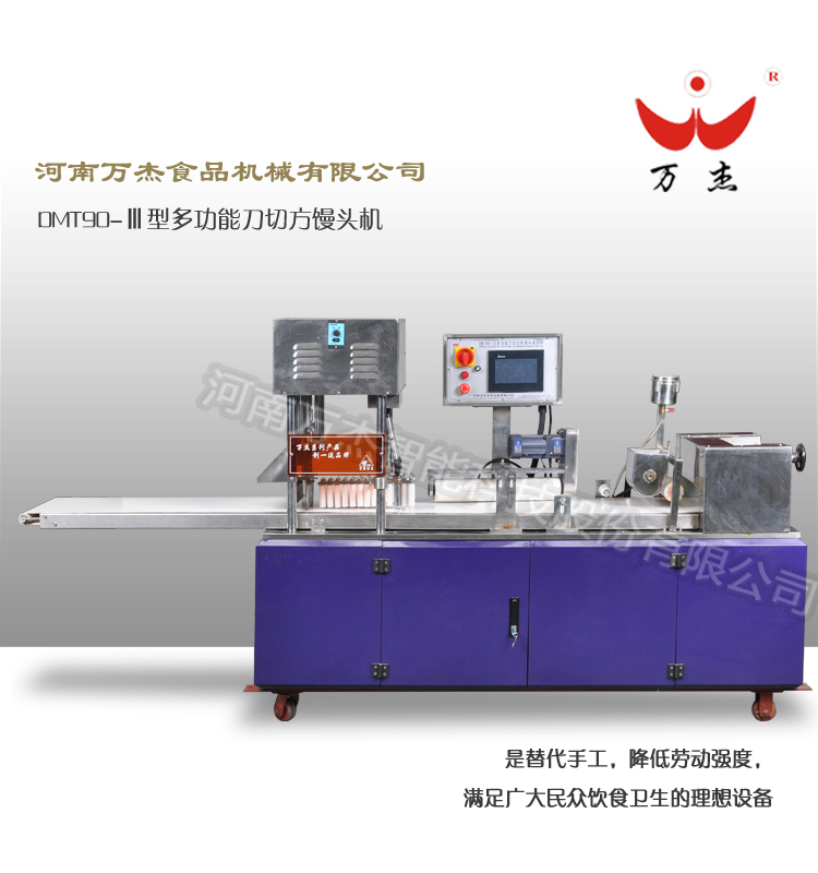 DMT90-Ⅲ觸摸屏微電腦控制方饅頭生產線廣泛適用于速凍面食加工廠,個體加工單位,主要用來生產刀切饅頭及花色點心。